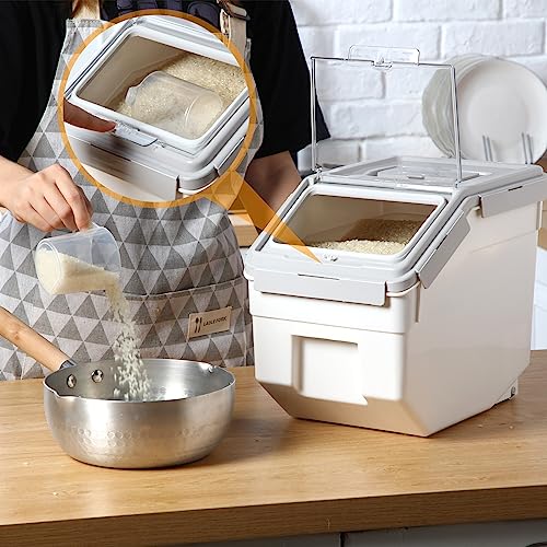Versatile Storage: the rice bin can be applied to store a variety of dry goods, such as rice, whole grains, corn, medicinal materials, flour, pet dry food, etc., providing better sealed storage space for your food; They are also suitable for storing food in restaurants, pantry, etc., making the food well stored